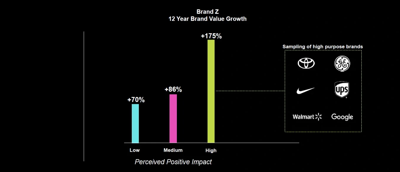 Brands that were outwardly purpose-driven in messaging grew by +175% in brand value growth over 12 years, in a study done by global market research company Kantar.